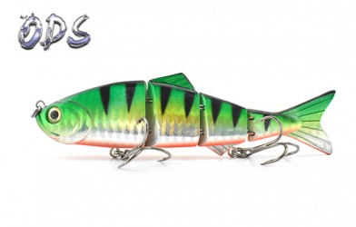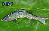 Four-section designing with the real fish picture painting which makes it looks like a real fish. Our 4-section minnow has the same swimming action as the real fish. The vivid swimming action and lifelike appearance can be easier to attract fish. What is more, this 4-section minnow is connected with the metal. It is strong enough to get a large fish and it is flexible in water. It is the best choice for the fishermen.