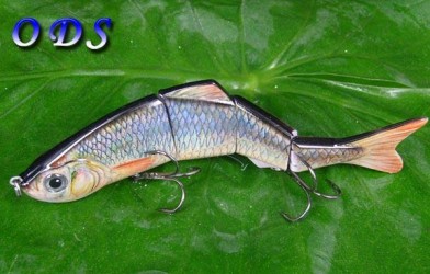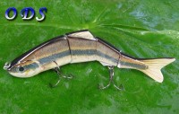 Four-section designing with the real fish picture painting which makes it looks like a real fish. Our 4-section minnow has the same swimming action as the real fish. The vivid swimming action and lifelike appearance can be easier to attract fish. What is more, this 4-section minnow is connected with the metal. It is strong enough to get a large fish and it is flexible in water. It is the best choice for the fishermen.